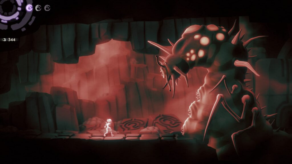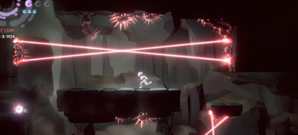 In a game where 80% is platforming, if the jump feels “floaty”, the game fails. Here, the movement is precise. Whether you are wall-jumping to avoid a projectile or getting into a certain place, the controls respond exactly as they should. Note that I played the entire game with a controller and I strictly recommend doing so.