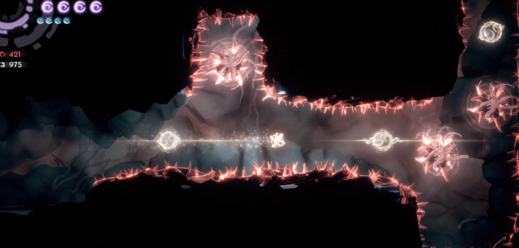 To counter this, some parts offer you an in-between checkpoint that costs crystals, a limited currency that can be acquired in the game and will really relieve you from stress in parts that can take everything from you. There are also some shrines that allow you to increase your health pool and so on in exchange for crystal temporality (till you die) but I wouldn’t waste such a limited resource on those.