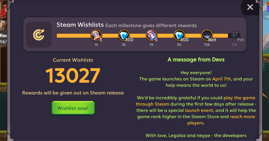 In general, the game manages to show enough information where it fits without making the UI feel clunky or unoptimized. The controls are fine—there isn’t much to click or navigate around—and it’s simple enough to feel like a true idler. The game had almost 15,000 wishlists before release, and in return, the developers gave players premium currency, items, and gear. A major plus for veterans is that all mobile players can log in via Steam and continue their progress on a bigger platform