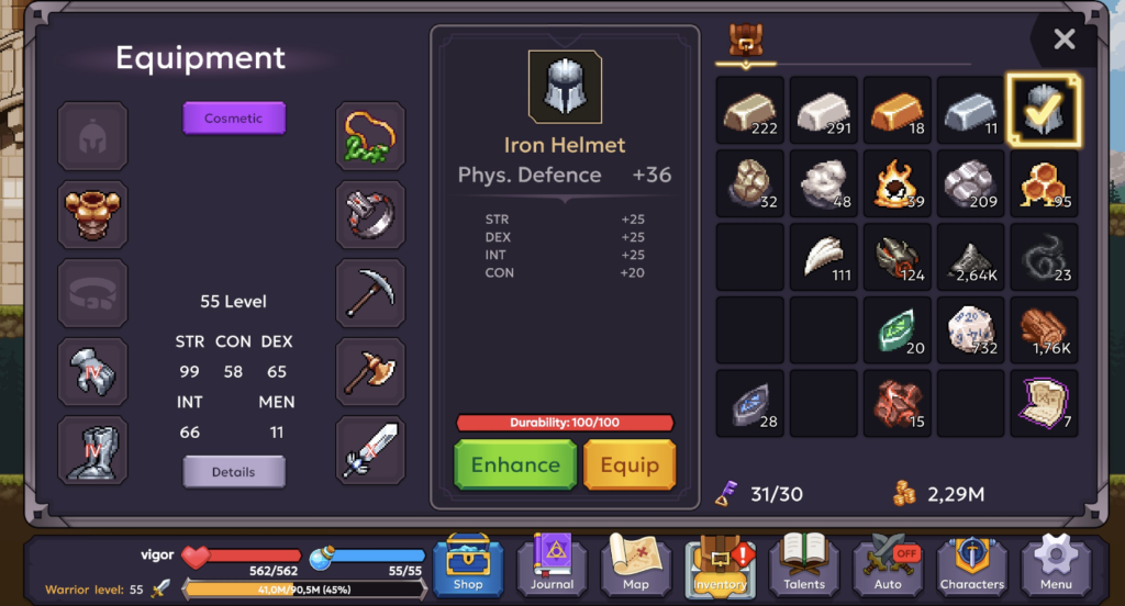 I made sure to finish the first Act, which ends with a Dragon boss. To defeat it, you must meet strict weaponry requirements; unless you have almost full upgraded Iron armor and a Steel weapon, you wouldn’t stand a chance. It took me a while to realize I shouldn’t be scared to enhance all my armor before moving forward, but once I did, it was “pancake easy”.